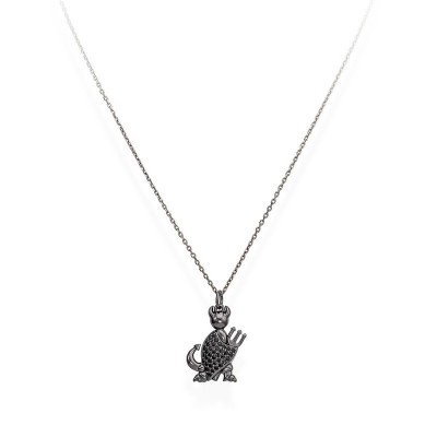 Collana Amen in argento 925. Pendente con diavolo di profilo e zirconi neri. Significato:'Per te che non ti scoraggi mai e guardi al futuro sempre con ottimismo'.