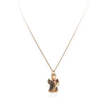 Collana Amen in argento 925 colore rosè. Pendente con diavolo di fronte e zirconi. Significato:' per te che hai trasformato le delusioni in opportunità.'