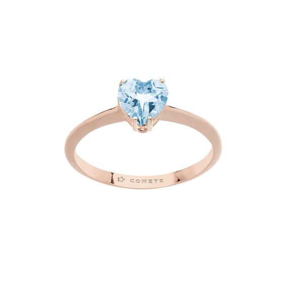 Anello in oro rosè con topazio azzurro taglio cuore ct. 1.02