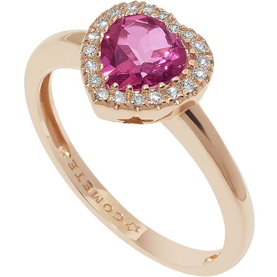 Anello Da Donna Della Collezione Fantasia Di Topazio Rosa Di Comete. Anello In Oro Rosa 750‰. Caratura Diamanti Bianchi P.Ct.8, Colore G, Purezza Si. Caratura Topazio Rosa A Cuore Ct.0,95. Dimensioni: Larghezza Centrale 8,96 Mm, Lunghezza Centrale 9,01 Mm, Profondità Centrale 4,82 Mm.