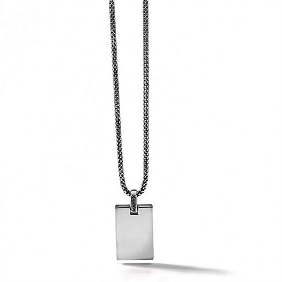 Collana uomo in acciaio con ciondolo lucido e diamanti 0,025 ct Lunghezza catena cm 50