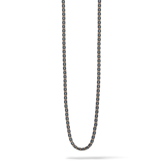 Girocollo in acciaio lucido, trattamento in PVD rosè satinato ed ematite nera lucida
