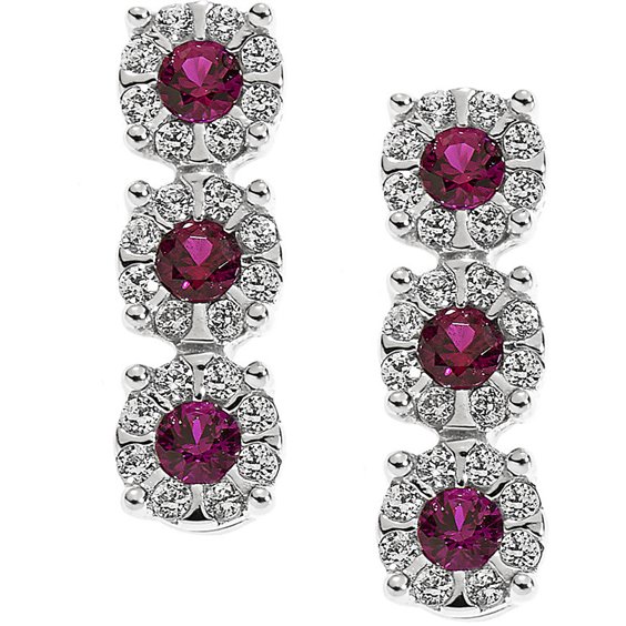 Orecchini in oro bianco 750/1000 con rubini ct. 0.11 e diamanti ct. 0.19.
