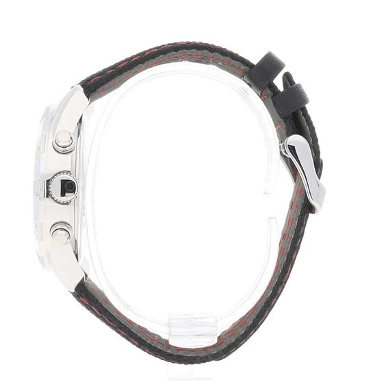 Orologio Festina bimbo. Cassa mm 36 in acciaio 316L, cinturino in pelle e tessuto tecnico nero con cuciture rosse. Quadrante nero con numeri arabi argento. Movimento multifunzione al quarzo, vetro minerale. Impermeabilità 5 atmosfere.