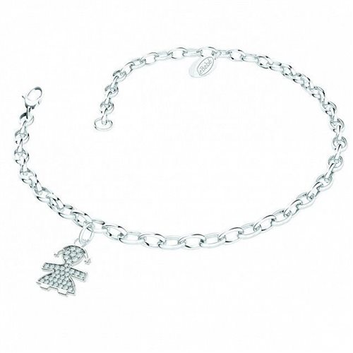 Bracciale LE BEBE in Oro bianco 18 kt finitura lucida, con pendente charms femminuccia in oro a pavè di diamanti taglio brillanti, 18 pietre per un totale di 0,05 ct. Cm 20 Certificato di garanzia per le pietre.