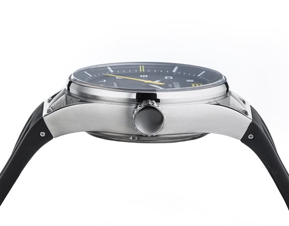 MOVIMENTO SOLO TEMPO QUARZO RONDA BIG DATE, CASSA 41 MM IN ACCIAIO AISI 316L E TITANIO, ANSA 23, QUADRANTE CON NUMERI ARABI STAMPATI, VETRO ZAFFIRO ANTI-RIFLESSO, IMPERMEABILITÀ 10 ATM.