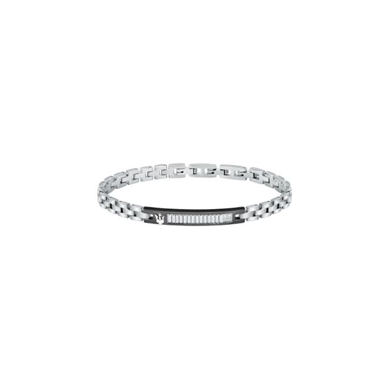 Bracciale Maserati uomo Bracciale in acciaio centrale in ip nero con diamanti Misura regolabile da 18 cm a 21,5 cm