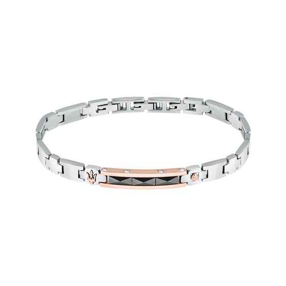 Bracciale Maserati uomo Bracciale in acciaio centrale in pvd oro rosa con inserto in ceramica nera e logo in pvd oro rosa Misura regolabile da 18 cm a 21,5 cm
