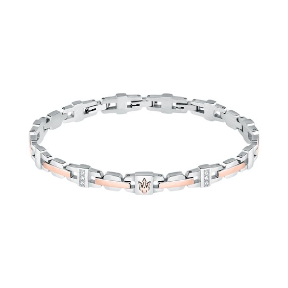 Bracciale Maserati uomo  Bracciale in acciaio con inserti in pvd oro rosa e cristali bianchi Misura regolabile da 18 cm a 21,5 cm