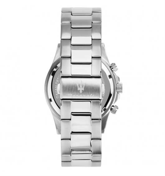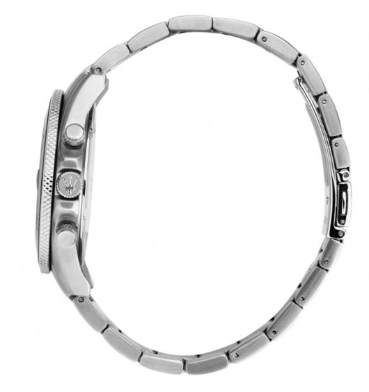 Orologio da uomo con movimento al quarzo Miyota JS25 e funzioni di cronografo con data. Cassa in acciaio inox dal diametro di 43 mm. Lunetta in ceramica nera. Quadrante analogico blu con indici a bastoni, logo a ore 12 e datario tra le ore 4 e 5. Fondello e corona a vite per garantire maggiore impermeabilità. Cinturino in acciaio anallergico; chiusura deployante con pulsanti. Resistente all'acqua fino a 100 metri di profondità.