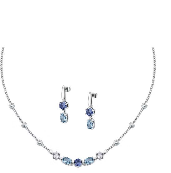 KIT MORELLATO COLORI - SAVY25 - Genere : Collana + Orecchini Donna, Colore: Silver, Morellato experience: Fashion, Materiale: Acciaio, Placcatura rodio, Cristalli, Peso: 4 gr, Pietra: Cristalli, Colore pietra: Azzurro Acquamarina, Blu Zaffiro, Bianco, Certificato di autenticità: Sì, Confezione: Originale Morellato