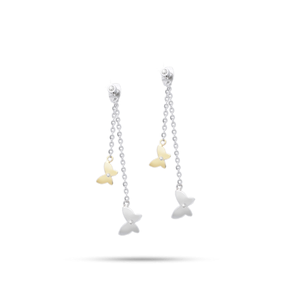 ORECCHINI PENDENTI IN ACCIAIO BICOLORE CON CRISTALLI.