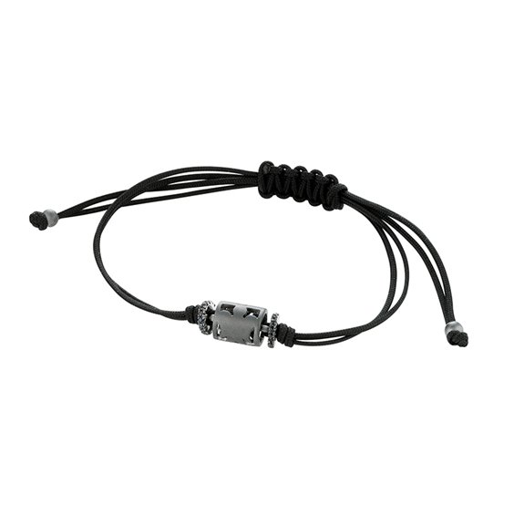 Gioiello Roberto Giannotti, Della Collezione Angeli. Bracciale In Cordino Nautico E In Argento. Bracciale Regolabile In Cordino Nautico Nero, Elemento In Argento Sabbiato Nero E Zirconi Neri: Base 0,7 Cm, Altezza 1,4 Cm.