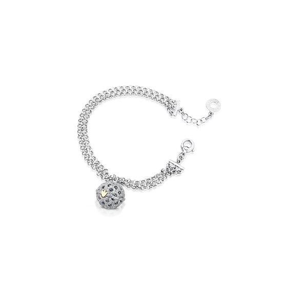 Bracciale Da Donna Di Roberto Giannotti Della Collezione Chiama Angeli. Bracciale A Tre Catene Con Chiama Angeli In Argento, Zirconi Bianchi E Angelo Rosato. Lunghezza Bracciale 16,5/19 Cm, Diametro Sfera 1,5 Cm.