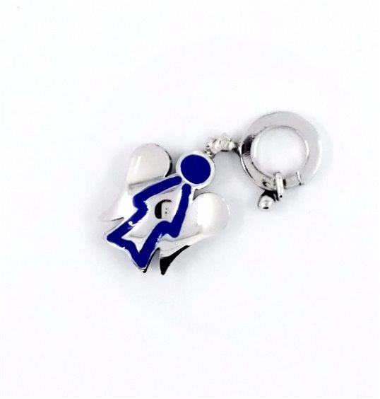Charm in argento con moschettone - angelo smaltato blu - lunghezza cm 2 - peso gr 3,8