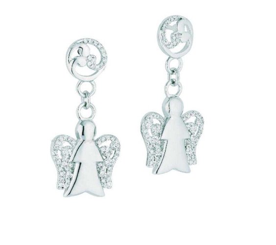 ORECCHINI PENDENTI IN ARGENTO A FORMA DI ANGELO. MOLTO LUMINOSI. LUNGHEZZA CM 3,5. PERNO A PALETTO