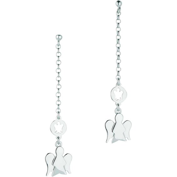 ORECCHINI IN ORO BIANCO, LUNGHEZZA CATENA 3 CM, PENDENTE ANGELO: BASE 1,3 CM E ALTEZZA 1,1 CM.
