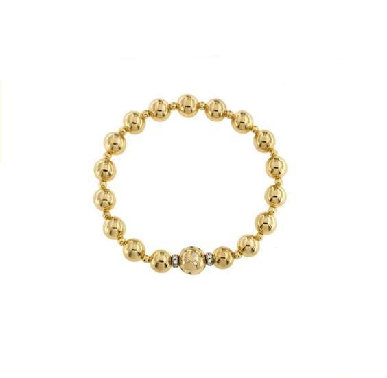 Bracciale elastico della collezione Rue Des Mille Starball da donna. Colore: oro. Bracciale in argento 925‰ con galvanica in oro giallo 18Kt e alternanza di sfere di varie dimensioni e zirconi bianchi.