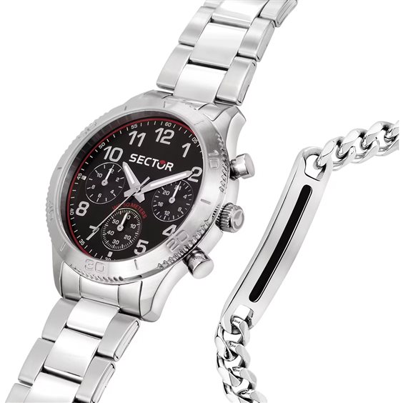 Sector experience: No Limits, Genere : Uomo, Dimensione cassa: 37.00, Materiale e finitura cassa: Acciaio, Lucido e satinato, Misura cassa: 37mm, Spessore cassa: 9,70, Finitura cassa: Lucido, Satinato, Colore: Silver, Colore cassa: Silver, Vetro: Vetro minerale, Materiale cinturino: Bracciale in metallo, metallo, Fibbia: Deployment con pulsanti, Colore cinturino: Silver, Chiusura: Deployment con pulsanti, Movimento: Quarzo, Water resistant: 5 atm, Sostituzione batteria: Sì, Garanzia: Ufficiale 3 anni, Ufficiale 2 anni Sector